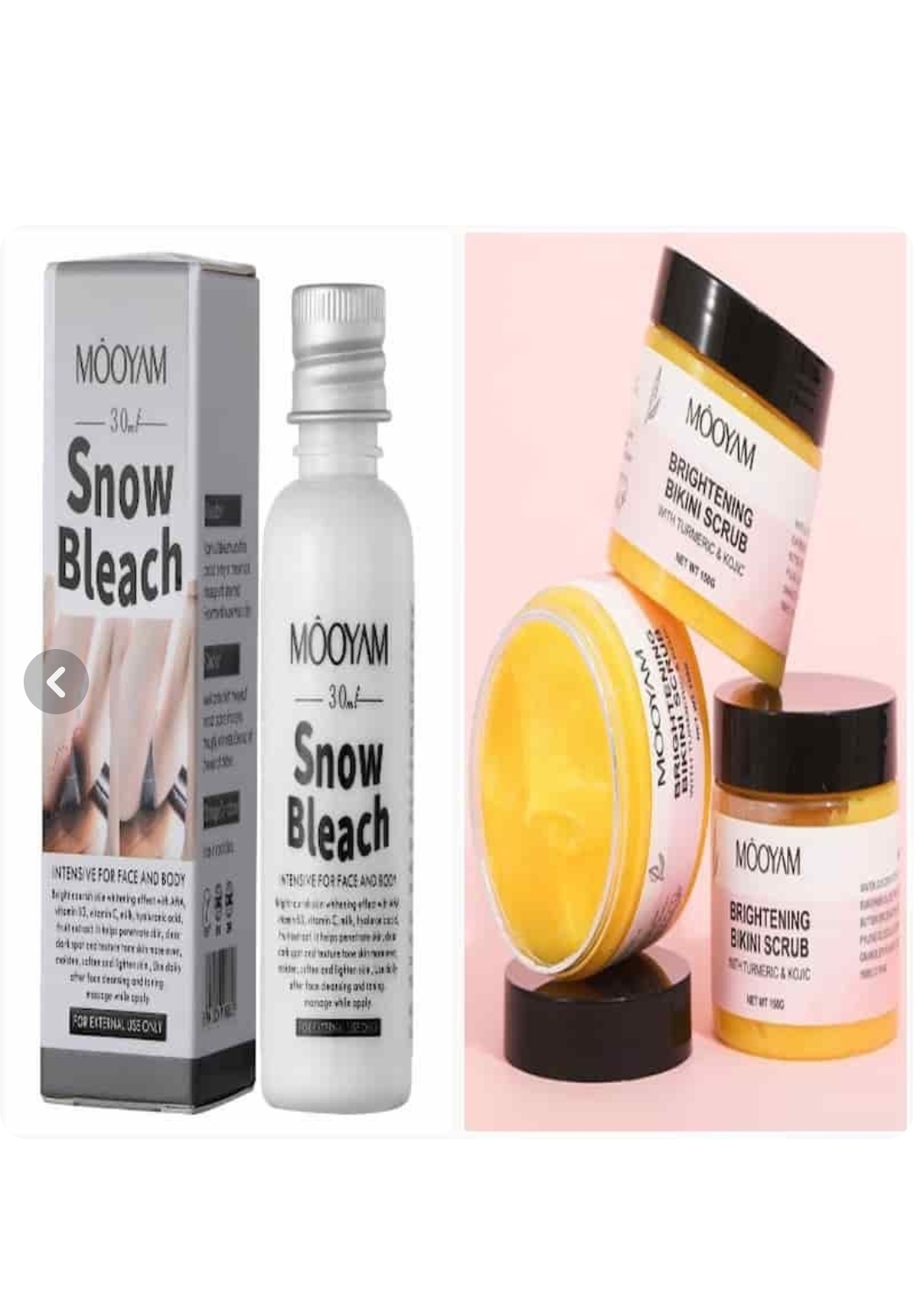 پکیج اسکراب و کرم سفید کننده صورت و بدن مویام اصلی
